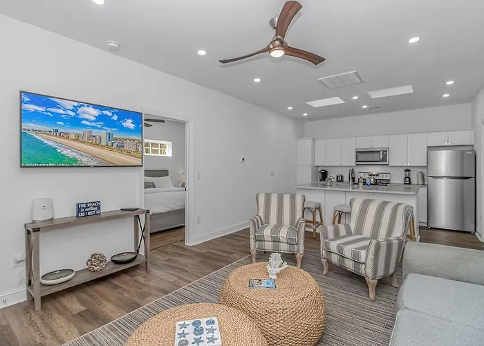 The holiday home provides a location approximately 10 minutes by car from the Rockin' Jump Myrtle Beach Trampoline Park and approximately 15 minutes by car from the I Love Sugar. The nearby cultural attractions include the Franklin G. Burroughs-Simeon B. Chapin Art Museum|the Franklin G. Burroughs Seaside Center, which is 2.9 km away. Sandy Smiles 2 Min Walk To Beach villa is a short way from family-friendly places such as the seaside Family Kingdom Amusement Park.